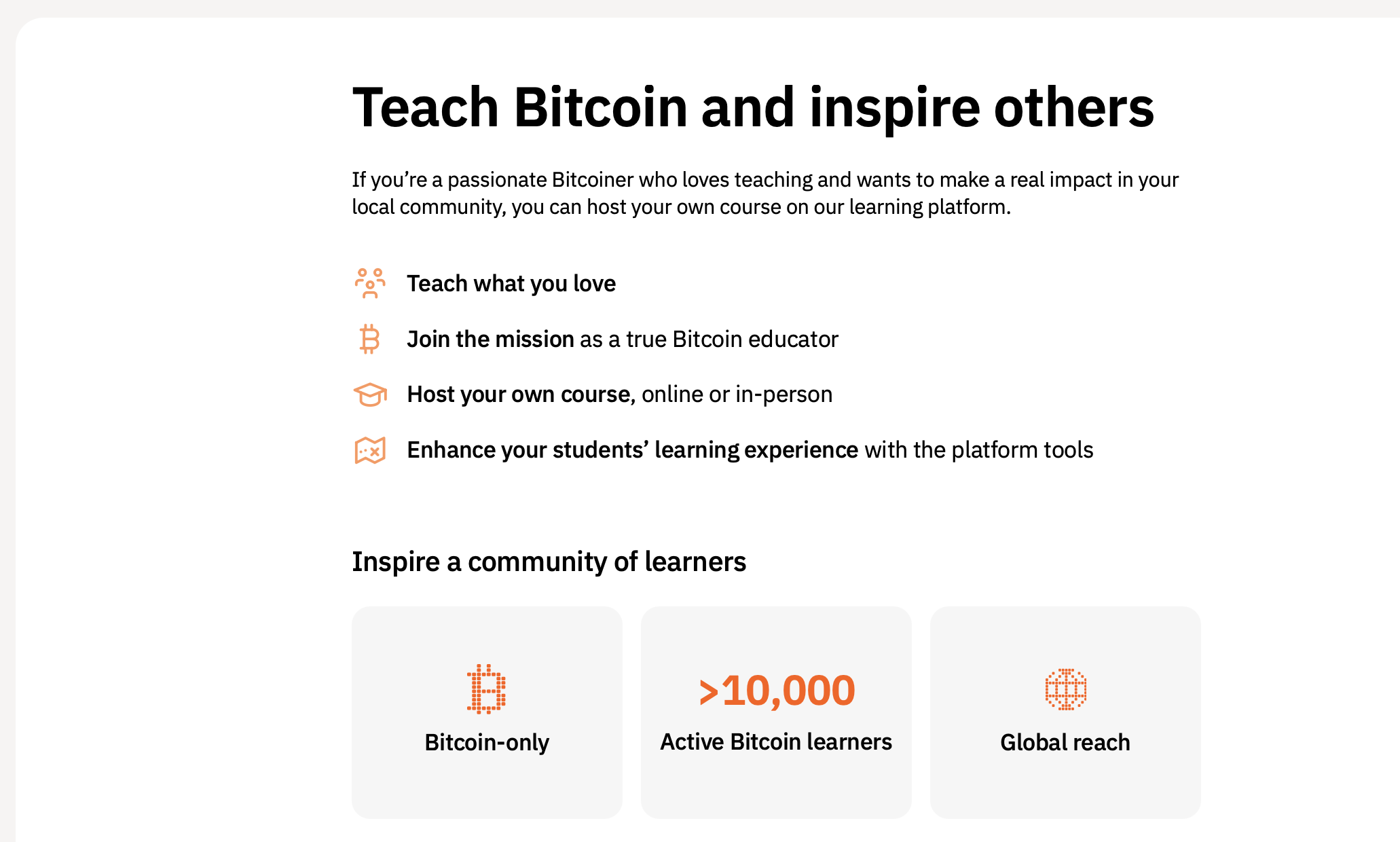 We’ve launched a new page for teachers to join the adventure and share our common passion. This page allows anyone interested in teaching or hosting a course on Plan ₿ Academy to get in touch with us directly. A welcome video for future educators will be added soon. Check it out here